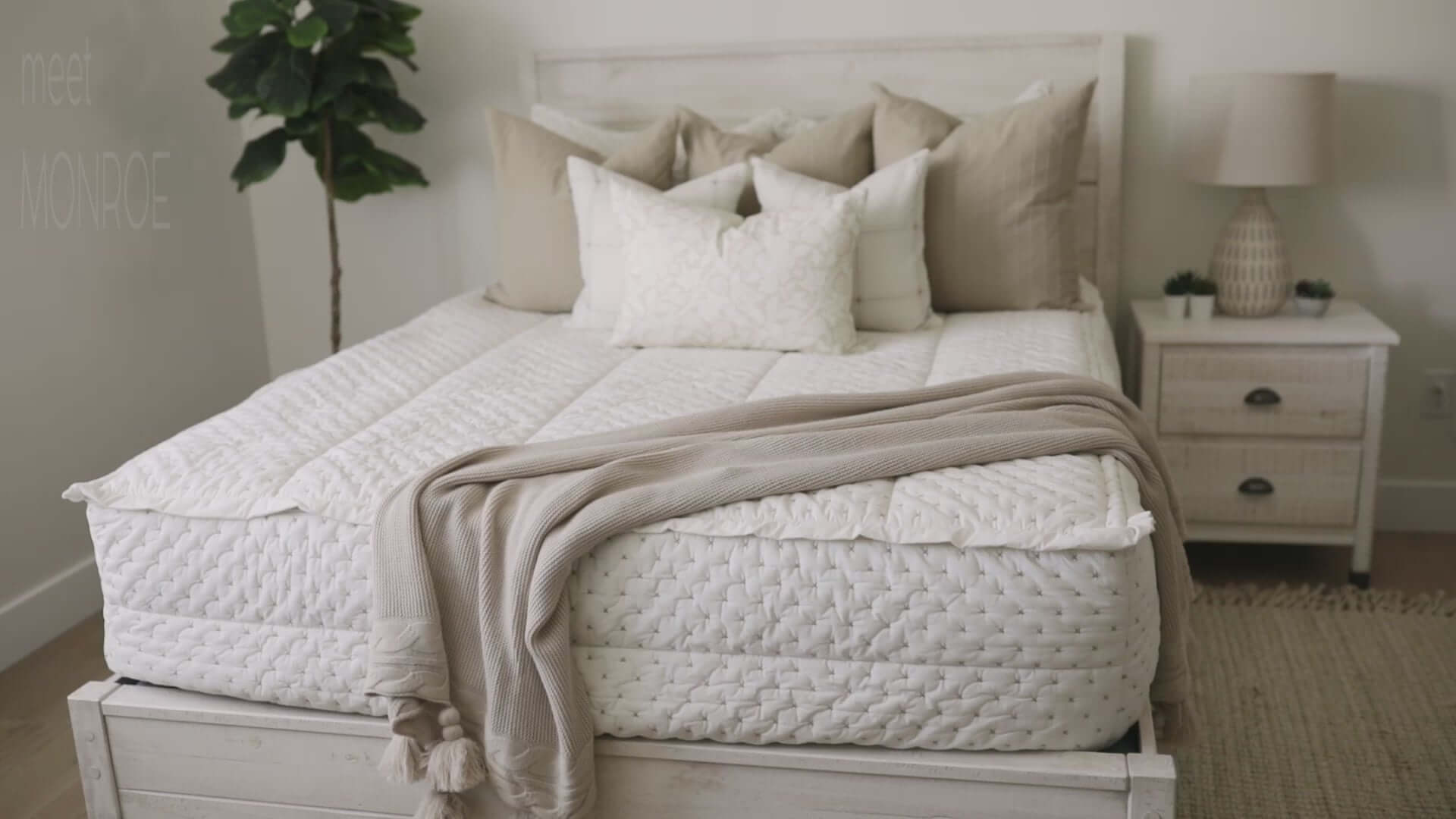Meet the new Monroe Luxe Beddy's. Monroe features a creamy white base with tan “x” embroidery pattern. We’ve given this style extra fill to increase the embroidery texture for a stunning final look. The interior has a coordinating cream and tan stripe and is the perfect neutral that can be styled for both adults and kids. Queen and King sizes feature new and improved comfort panels, with each side now extending to 15 inches.
