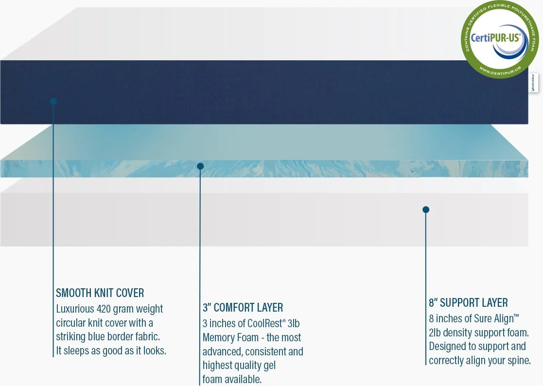 - 3" - 3 lb CoolRest® Gel Memory Foam